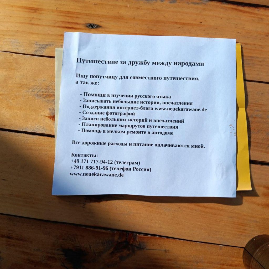 Da ich meine lange Reise durch Eurasien leider allein bewerkstelligen musste (meine Freundin hatte mir die seit Jahren zugesagte Mitreise dann doch abgesagt), war ich darüber nicht sehr glücklich. Anfangs hat mich ja in Portugal mein Freund Matthias begleitet, den 2. Teil in Richtung Russland bis Wolgograd war mein Freund Uli mit seinem Lkw dabei. Dann aber allein durch Eurasien?