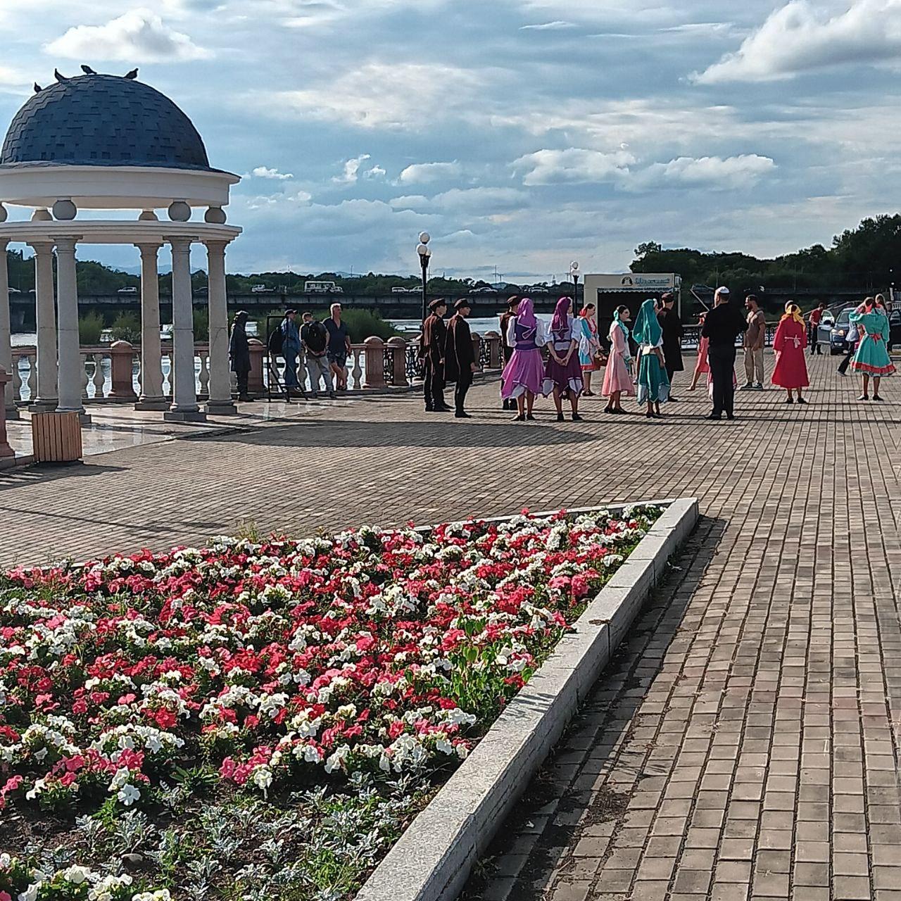 Während unserer Zeit in Birobidshan sind wir von allen möglichen Gesprächspartnern bestimmt 4 oder 5 Mal darauf hingewiesen worden, dass es demnächst am Zentralplatz ein großes schönes kostenloses Konzert geben wird. Wir sind deshalb extra einen Tag länger geblieben und die Stars des Konzertes waren dann Sahra und Oleg Gasmana, in ganz Russland bekannte Künstler.