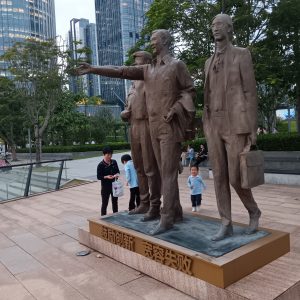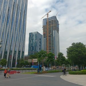 Mit Kelly und Eckard fahren wir in Richtung Küste ins 22. Jahrhundert, so bezeichneten sie den Stadtteil Nanshang. Hier auch die höchsten Gebäude der Stadt auf einem Terrain, wo vor 10 Jahren noch Südchinesiches Meer gewesen sein soll. Der gesamte Stadtteil aus dem Meer aufgeschütteter Sand oder ähnlich, das kann man nur ein bisschen fotografieren und begucken.