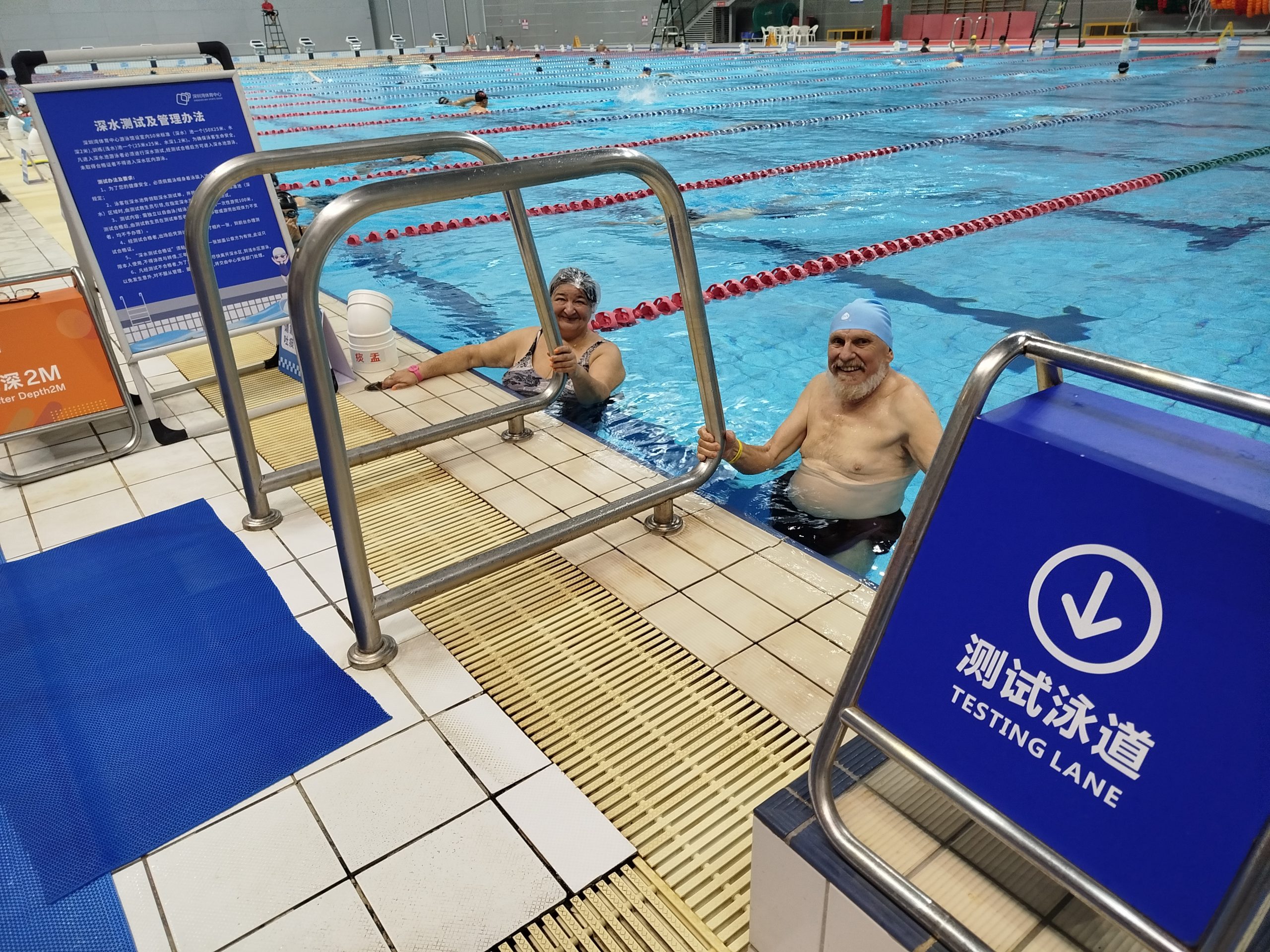 Eckardt hatte sich für diesen Tag mit seinem Freund Wolf aus Shenzen zum Schwimmen verabredet und fragte uns, ob wir auch Lust hätten mit ins Hallenbad zu gehen. Wir hatten Lust, ich hatte sogar eine Badehose in unserem spärlichen Gepäck (Handgepäck pro Person 5 Kg im Flugzeug).