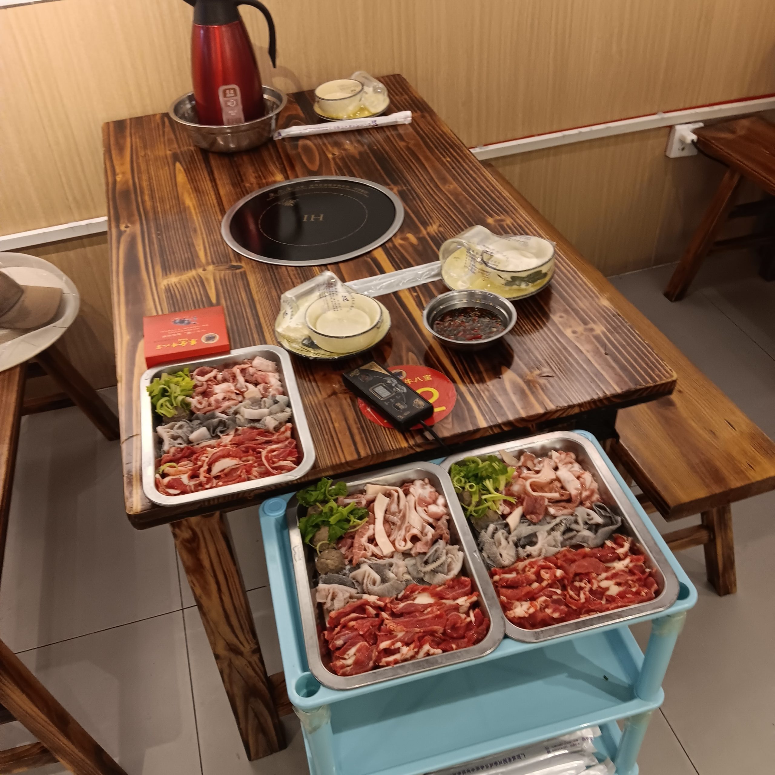 – In den richtig guten Gaststätten haben die Tische in der Mitte entweder eine große drehbare Glasplatte auf die die Speisen in Schüsseln kommen, oder in den Tisch eingelassen ist eine Induktionsheizplatte oder ein Gaskocher und du garst dir deine Speisen selbst.