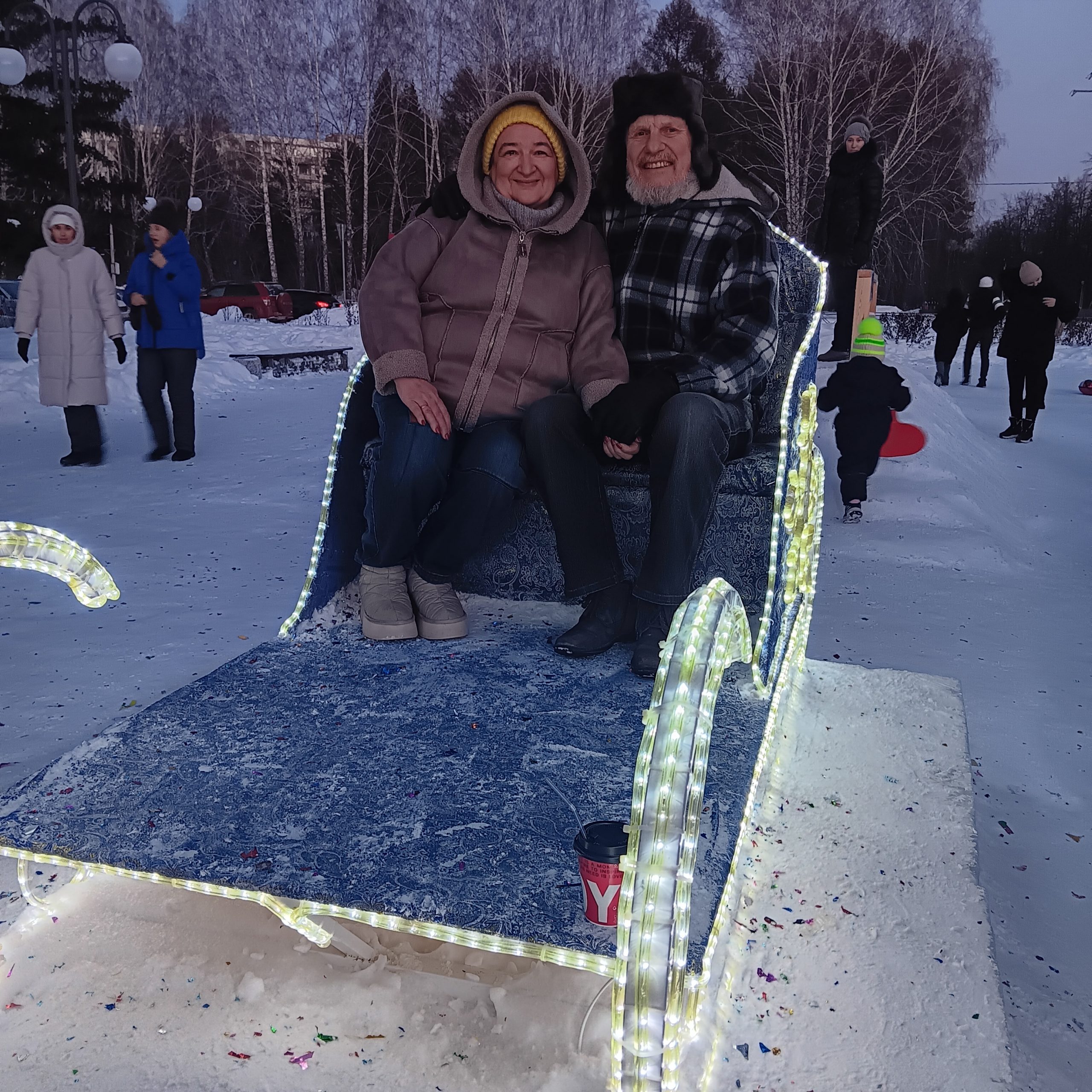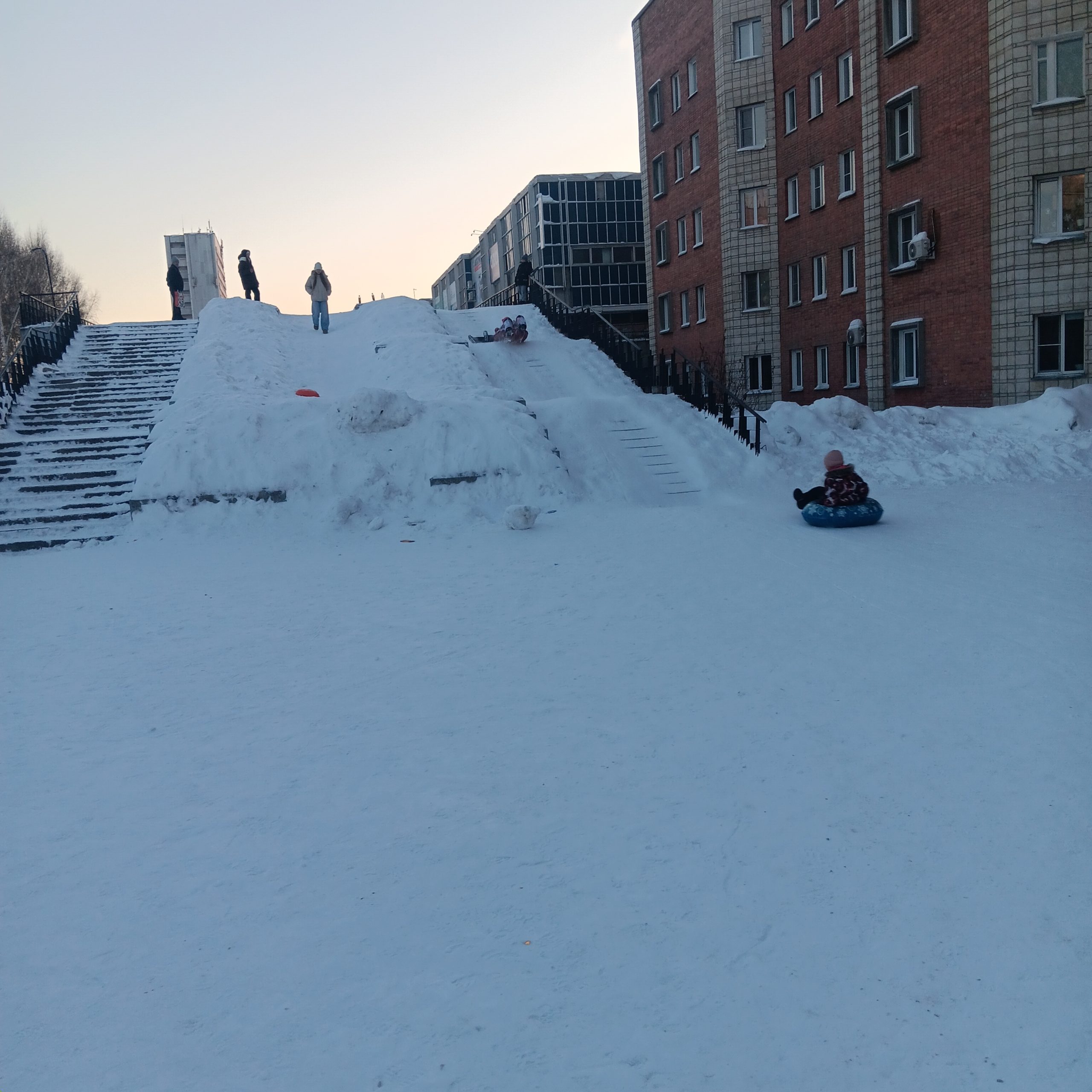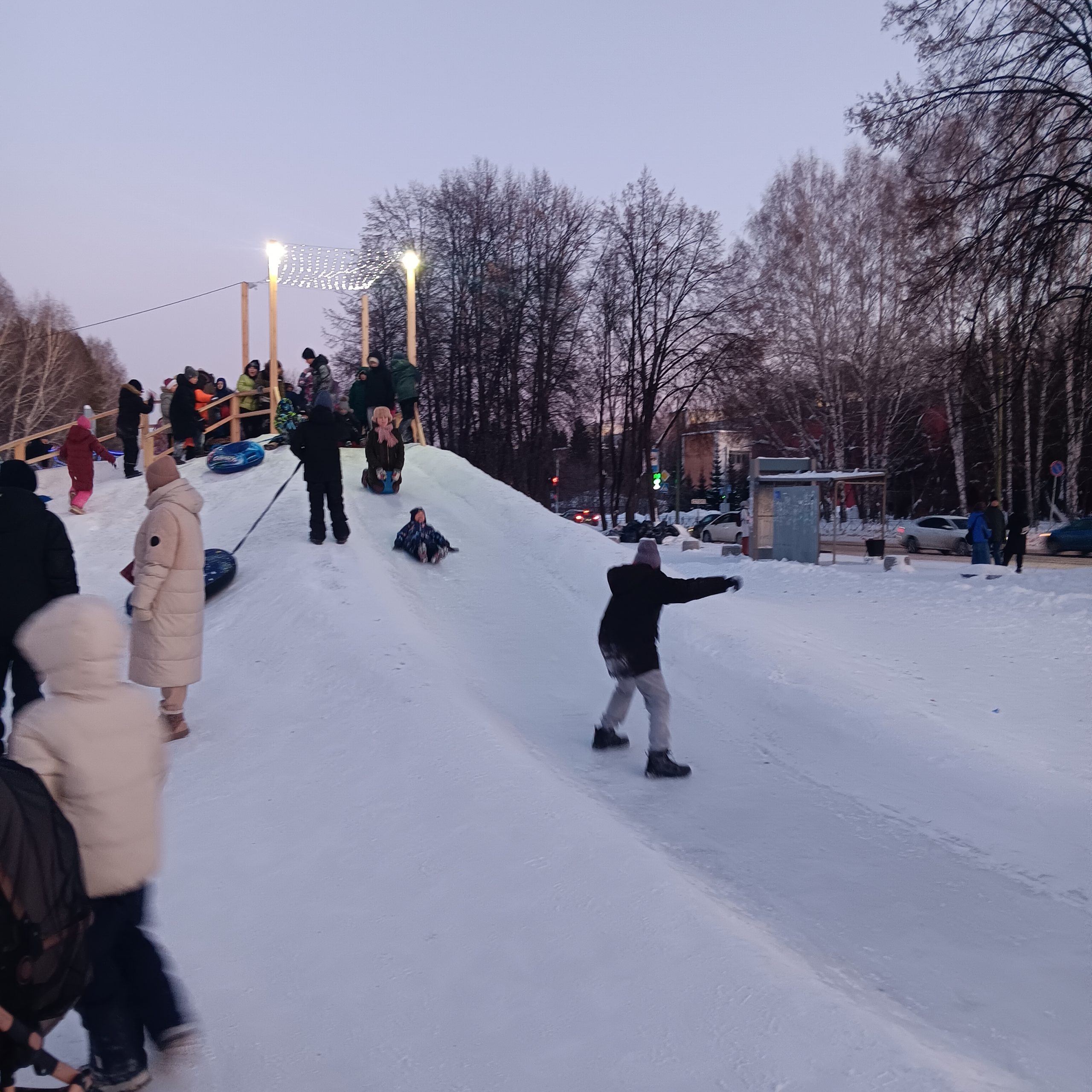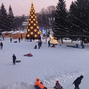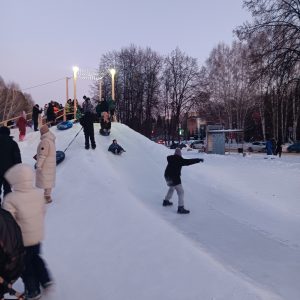 Das neue Jahr begrüßten wir dann richtig im Zentrum von Krasnoobsk zwischen vielen Familien und rodelnden Kindern.