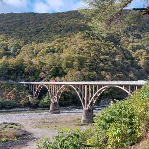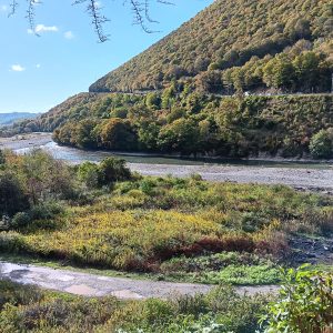 Die Europastrasse entlang vom oberen Eschera, dem Standplatz im Gelände der Stiftung, bis in die Hauptstadt Suchumi (Suchum) am Meer waren es 7 km. Dorthin fuhr ich auch einkaufen, Menschen kennenlernen und am Meer verweilen. Etwa auf der halben Strecke, über ein steiles Tal, war eine Brücke. Wie mir die Einheimischen erzählten, wurde sie nach dem großen vaterländischen Krieg von deutschen Kriegsgefangenen gebaut, wie übrigens auch der Wiederaufbau des Bahnhofes.