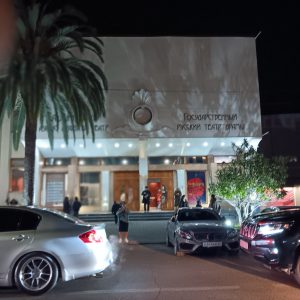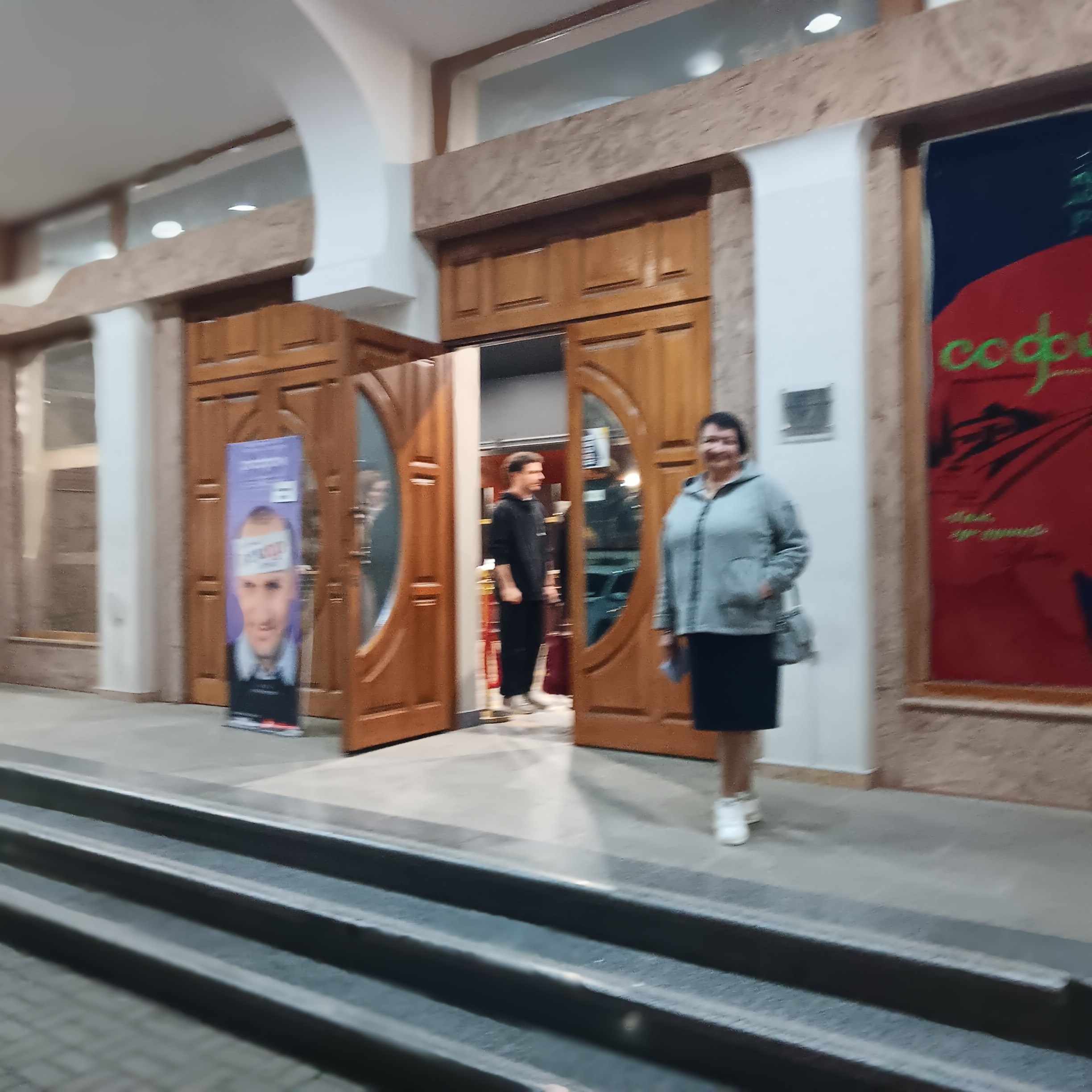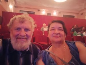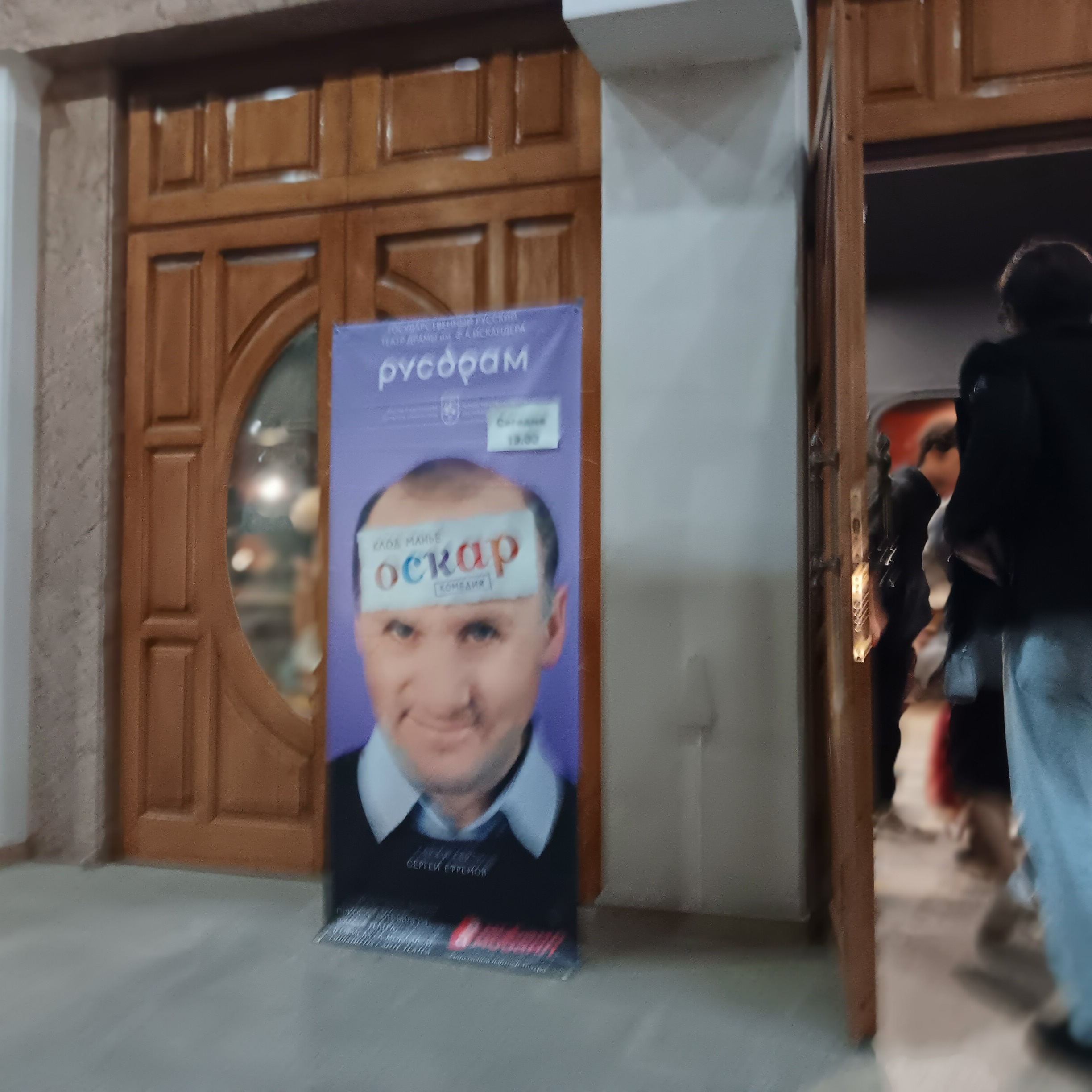 Соответственно, театр выглядит относительно новым как внутри, так и снаружи. Там шла пьеса для двух актеров, «Оскар». Мне приходится очень сильно концентрироваться; мне не хватает словарного запаса, и Наташа иногда мне помогает.