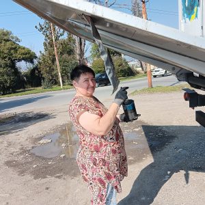 Наконец, настала очередь Люси работать снаружи. Наташа покрасила свежей краской те части, на которых уже виднелась легкая ржавчина. Я почистила солнечные панели на крыше, и прохожие махали мне рукой.