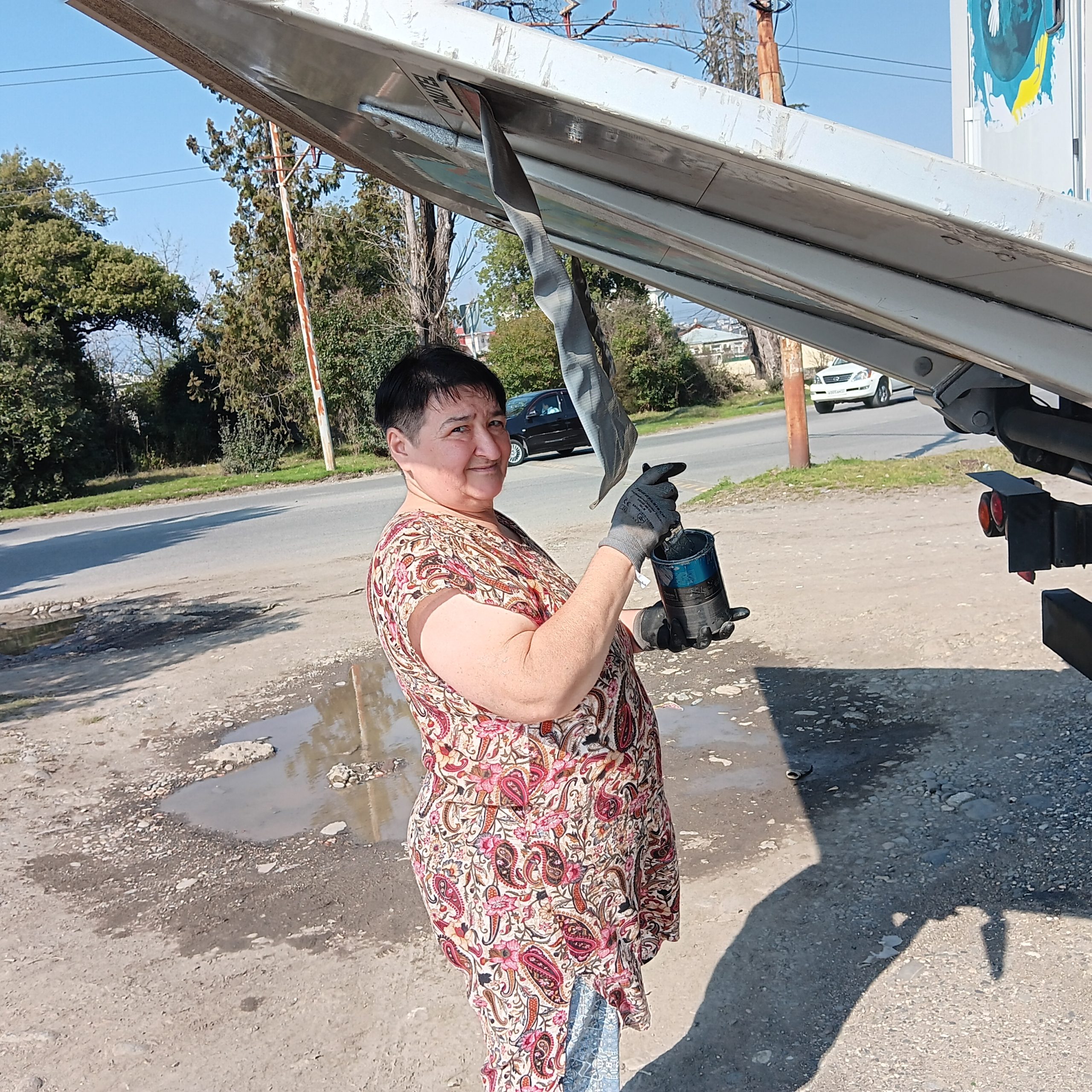Наконец, настала очередь Люси работать снаружи. Наташа покрасила свежей краской те части, на которых уже виднелась легкая ржавчина. Я почистила солнечные панели на крыше, и прохожие махали мне рукой.