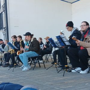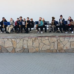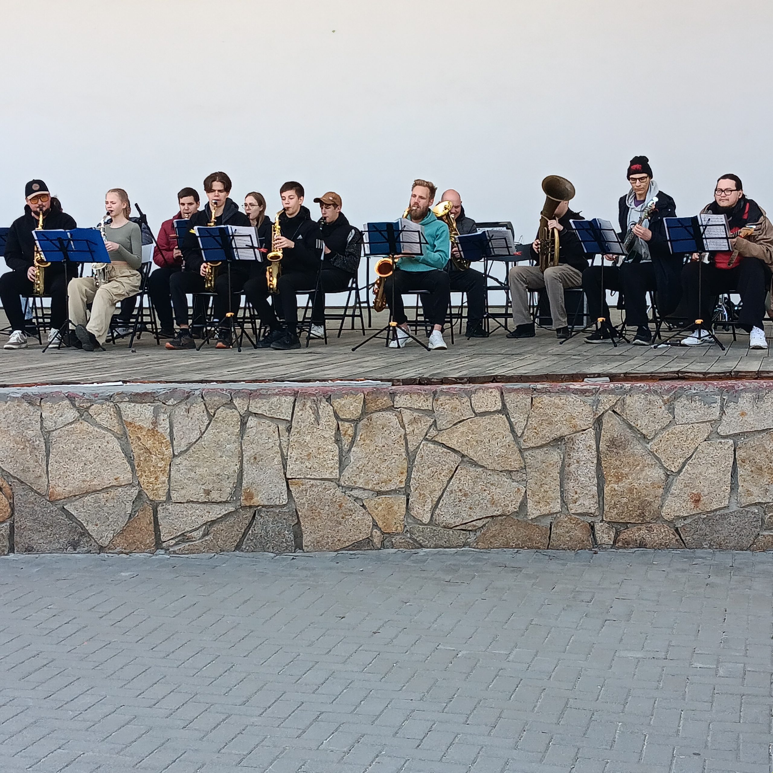 Als wir ankamen spielte eine vielköpfige Kapelle in einer Big-Band-Bläserbesetzung die verschiedensten modern arrangierten Lieder nach internationalen und russischen Weisen. Sie wurden dann abgelöst durch Einzelinterpreten im Karaoke-Stil. Die meisten Zuschauer und -hörer waren schon dabei zu tanzen und wir schlossen uns ihnen an.