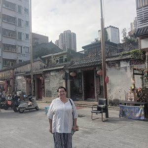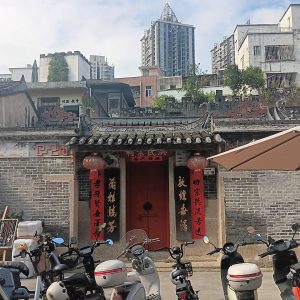 Nun, Mitten auf der Gasse steht ein protziger Porsche, wir lästern, da holt ein relativ junger Chinese etwas von diesem Rücksitz. Marcus und Wu Sjan kommen mit ihm ins Gespräch von dem ich natürlich nichts verstehe. Es stellt sich heraus, die Familie stellt Bilderrahmen aus edlen Hölzern in allen Varianten bis zum Barock her. Die werden über Amazon in alle Welt verkauft. Schließlich lädt er uns ein, wir fahren mit dem Lift und kommen in einer größeren Werkstatt mit Büro an. Seine Mutter begrüßt uns, sie ist wohl die Geschäftsführerin, denn ihr gehört wohl auch der „Electronic-Porsche“ von über 100.000 €. So gut es geht beteilige ich mich am Gespräch, die Freunde übersetzen. Als sie hört, weshalb wir in Eurasien unterwegs sind, schenkt sie uns spontan einen kleinen Bilderrahmen, passend zur Größe unseres Aufklebers, den wir ihr überreicht haben.