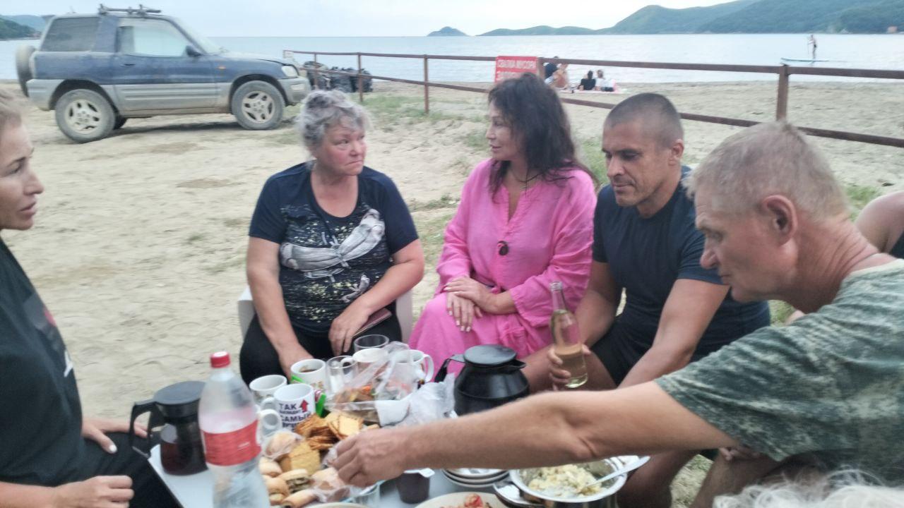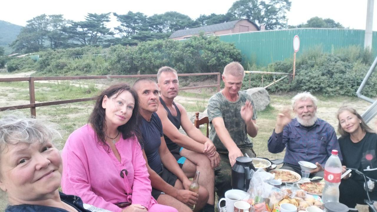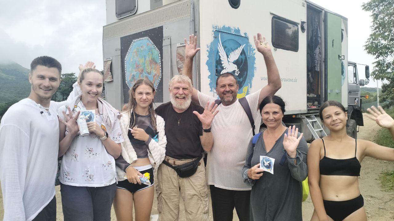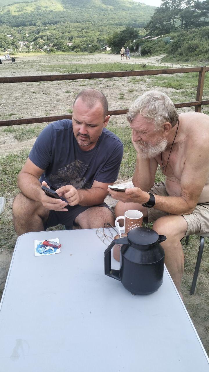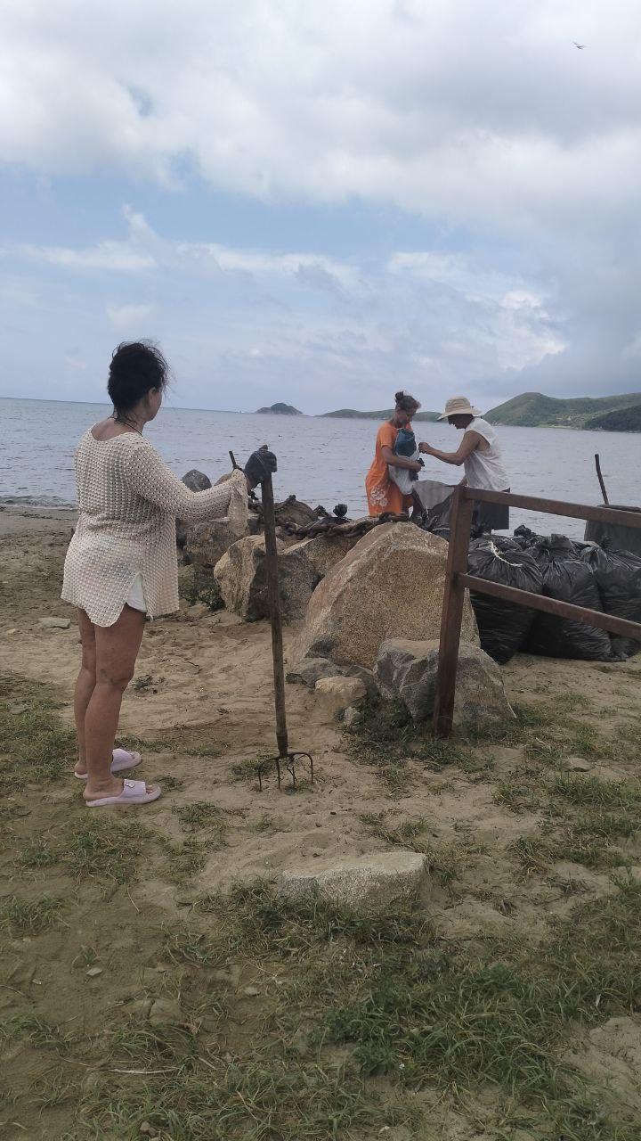 Es war tatsächlich die Idee der Urlauber, den Strand von Algenschlick etc. zu säubern, sie borgten sich bei mir Arbeitshandschuhe aus. Natascha hat sie zu uns zum Abendessen eingeladen, Salat und Pizza usw. bereitet. Es wurde viel gelacht und ich habe ein paar Beiträge mit meiner Stimme, der Gitarre dazu geliefert.