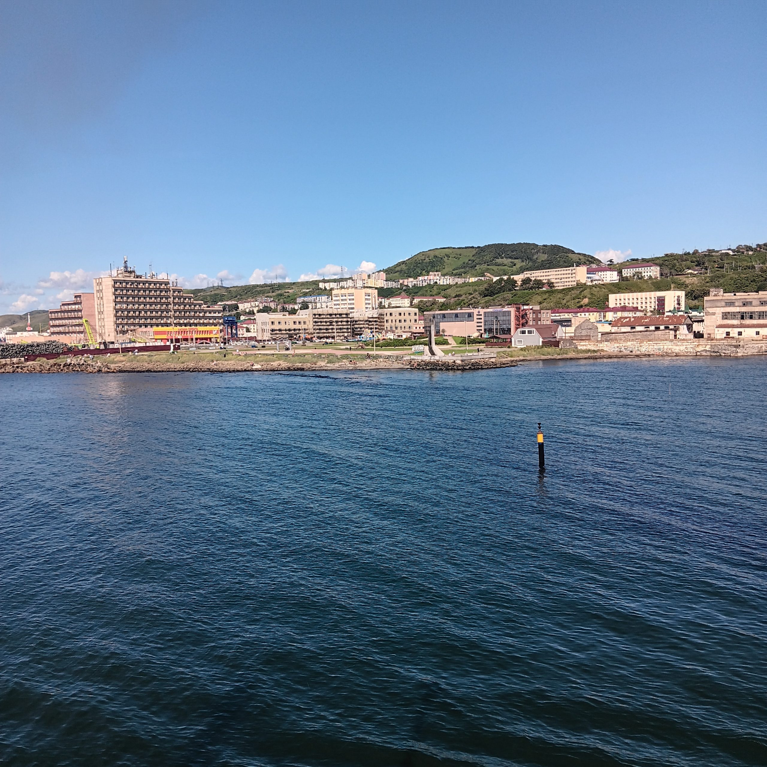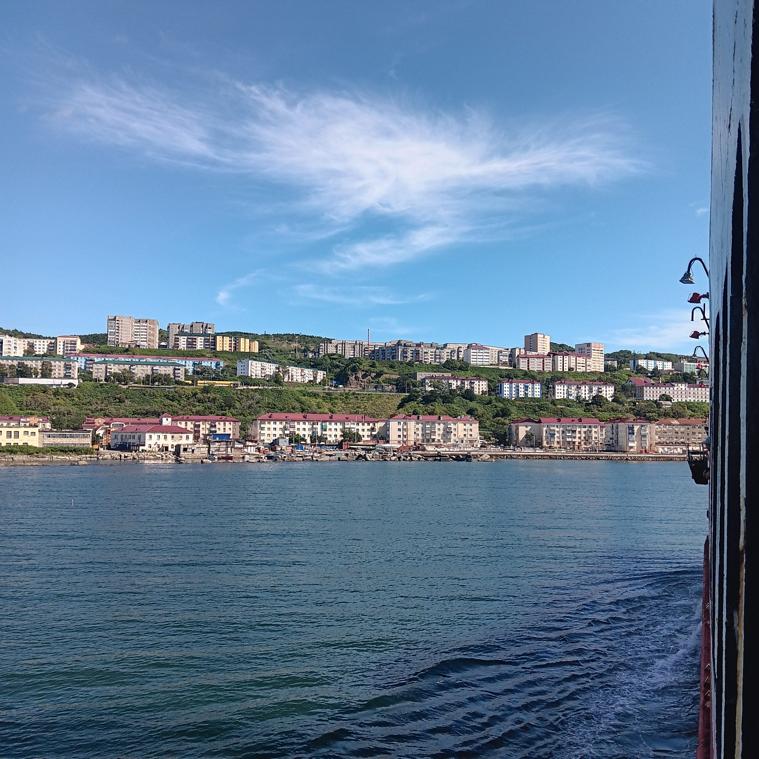 Wir fuhren über Nacht und der Morgen begrüßte uns mit Sonnenschein und dem Anblick von Sachalin in der Ferne.